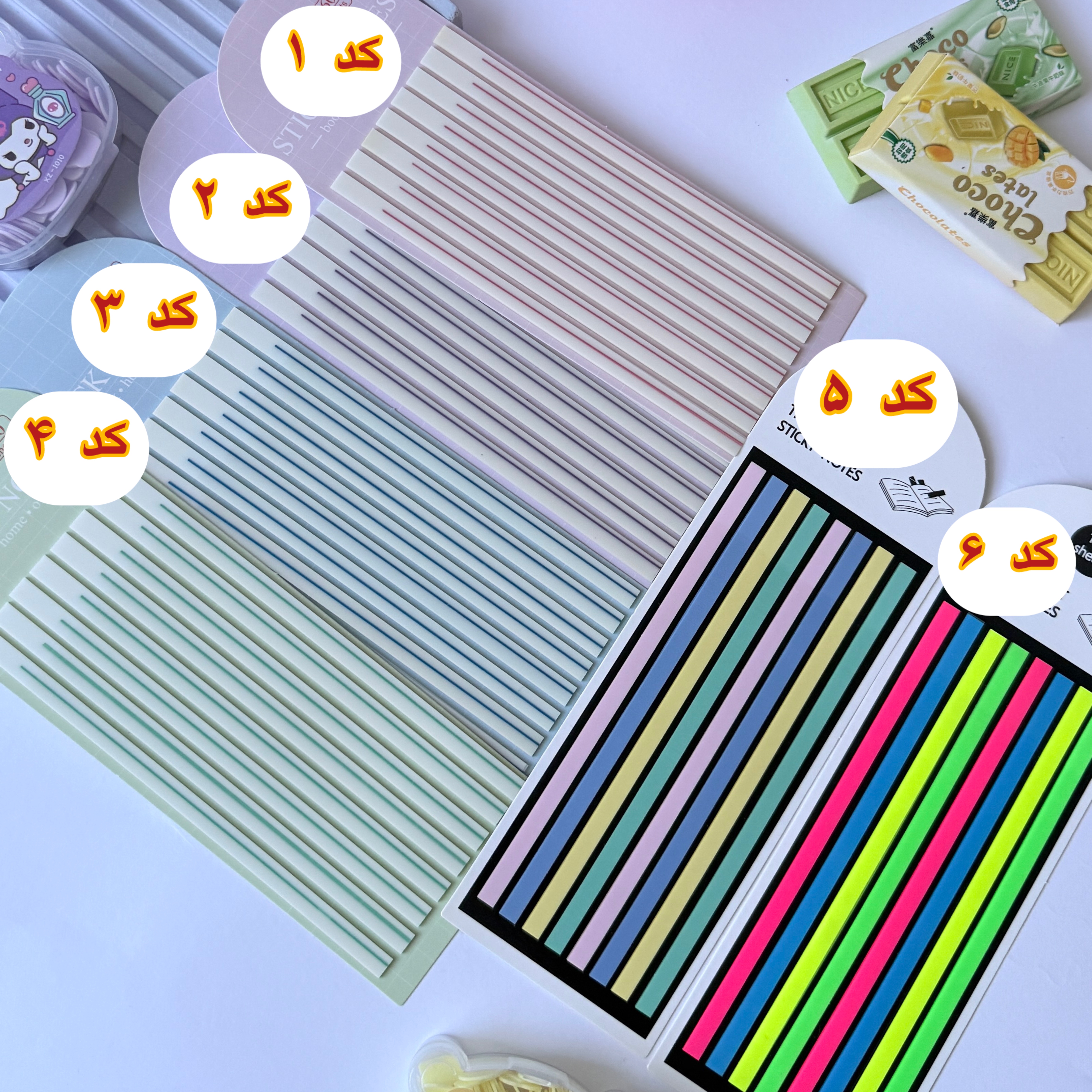 هر کدام شامل ۱۶۰نوار باریک که می توانید روی نکات مهم کتاب بچسبانید