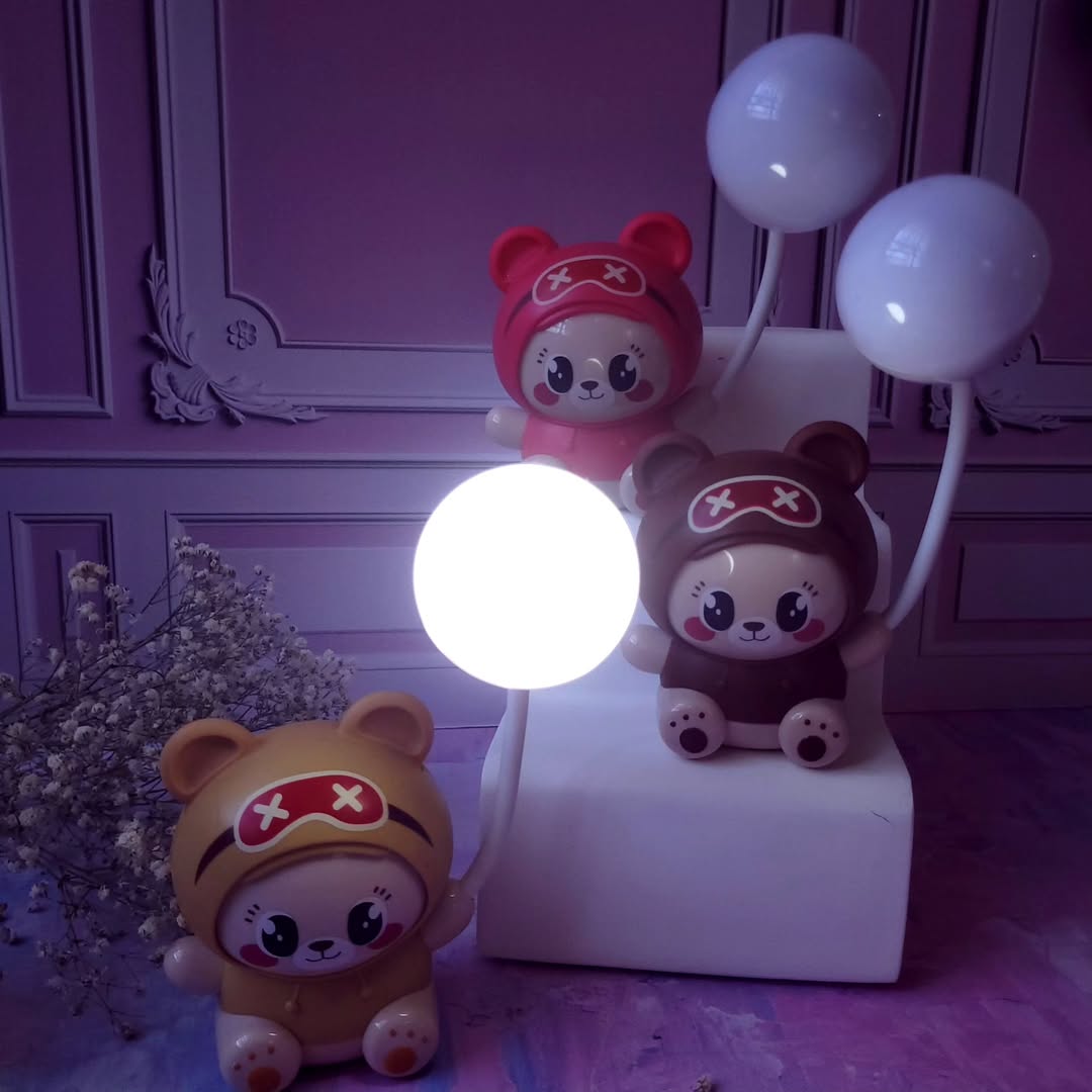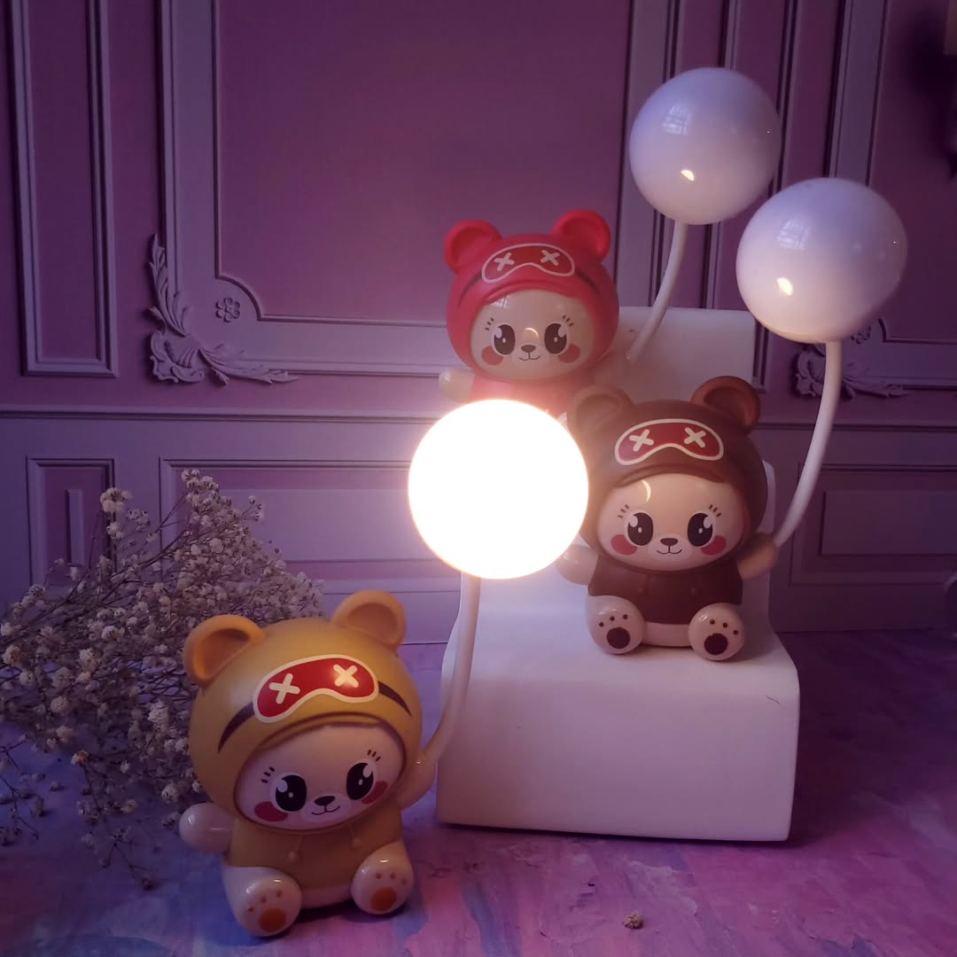 چراغ مطالعه طرح خرس دو حالت نور مهتابی و افتابی دارای کابل USB شارژی می باشد